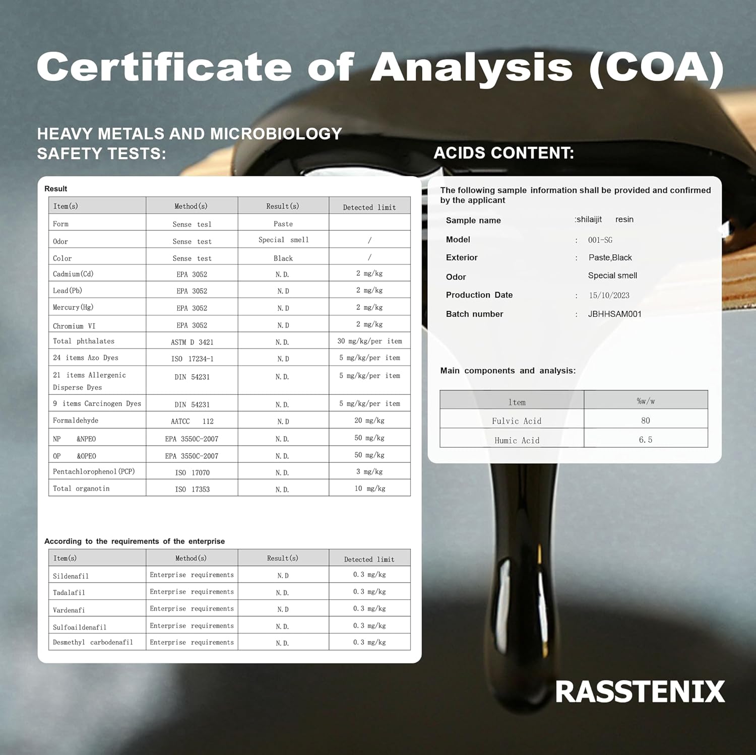 Every batch is chemical-free, solvent-free, non-GMO, and lab-tested for purity. No fillers, no sugars, no molasses, no artificial additives—just pure, potent shilajit resin you can trust.