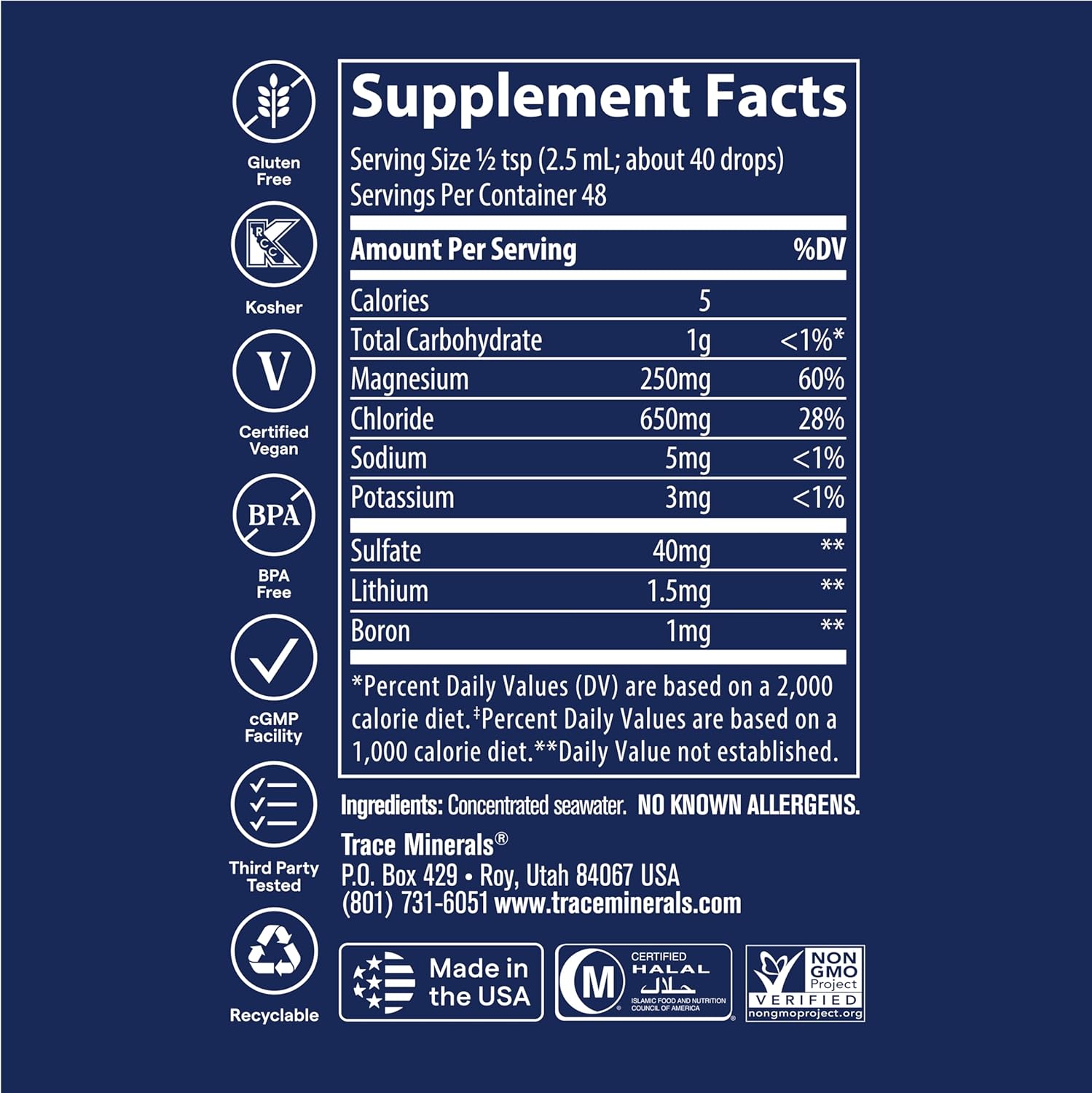 A highly concentrated liquid mineral supplement delivering 70+ ionic trace minerals, including magnesium, chloride & potassium. Supports energy, hydration, digestion, bone health & overall wellness. Keto-friendly, vegan, non-GMO & sustainably harvested in the USA.